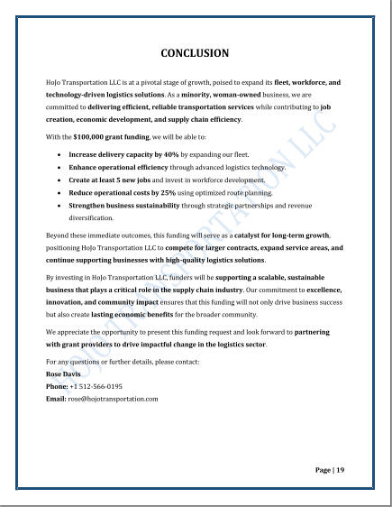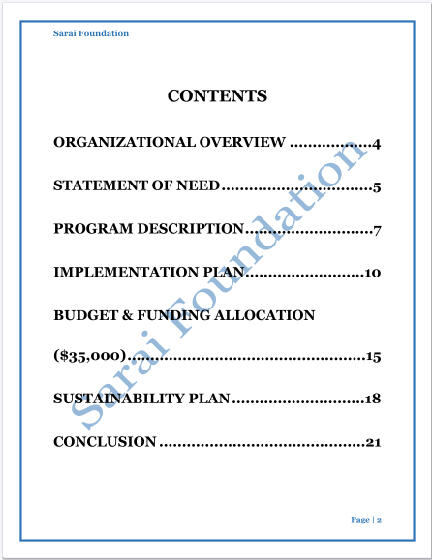 Here are some of the grant proposals that we have written for both business and non profit organizations.